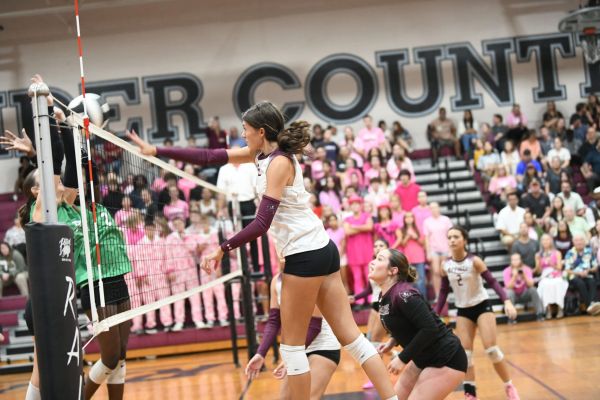 Katelyn Weller sends the ball over the net in a match against Choctaw.