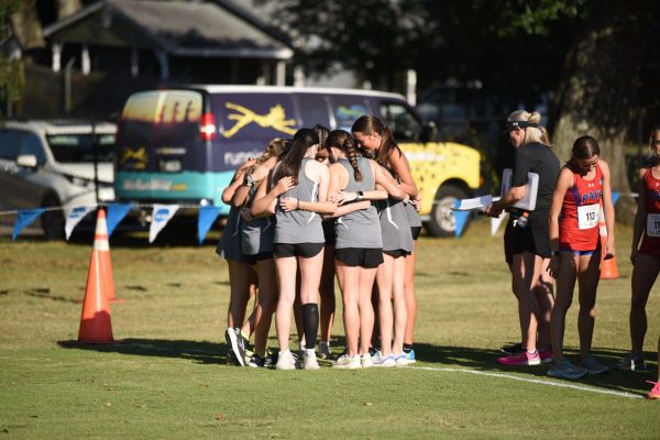 The Raider girls cross-country team gets ready for a meet earlier this season. (File Photo)