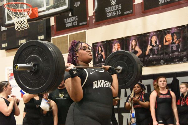 After head coach Garrett Bagley gave a pep talk to the team Friday night, Izzy Zach took a moment to say a few words to the team in the wake of a runner-up finish for the Raider girls weightlifting team at its own invitational.