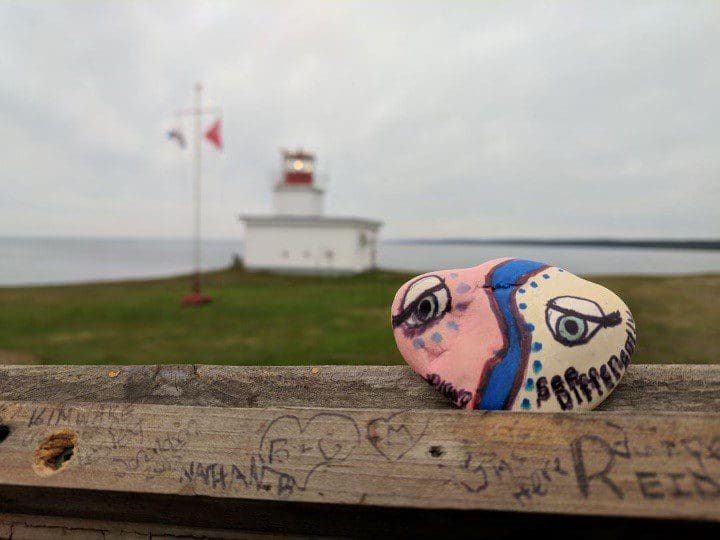 On the back was the name of a Facebook group which led her to a page filled with colorful rocks – people hiding them, people finding them and people painting them.
