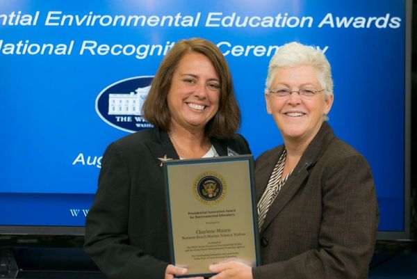 Navarre High School teacher Charlene Mauro accepted the Presidential Innovation Award for an Environmental Educator Aug. 12 from EPA Administrator Gina McCarthy. Mauro is also the project director at the Navarre Beach Marine Science Station, where more than 2700 students are taught about marine science each year.