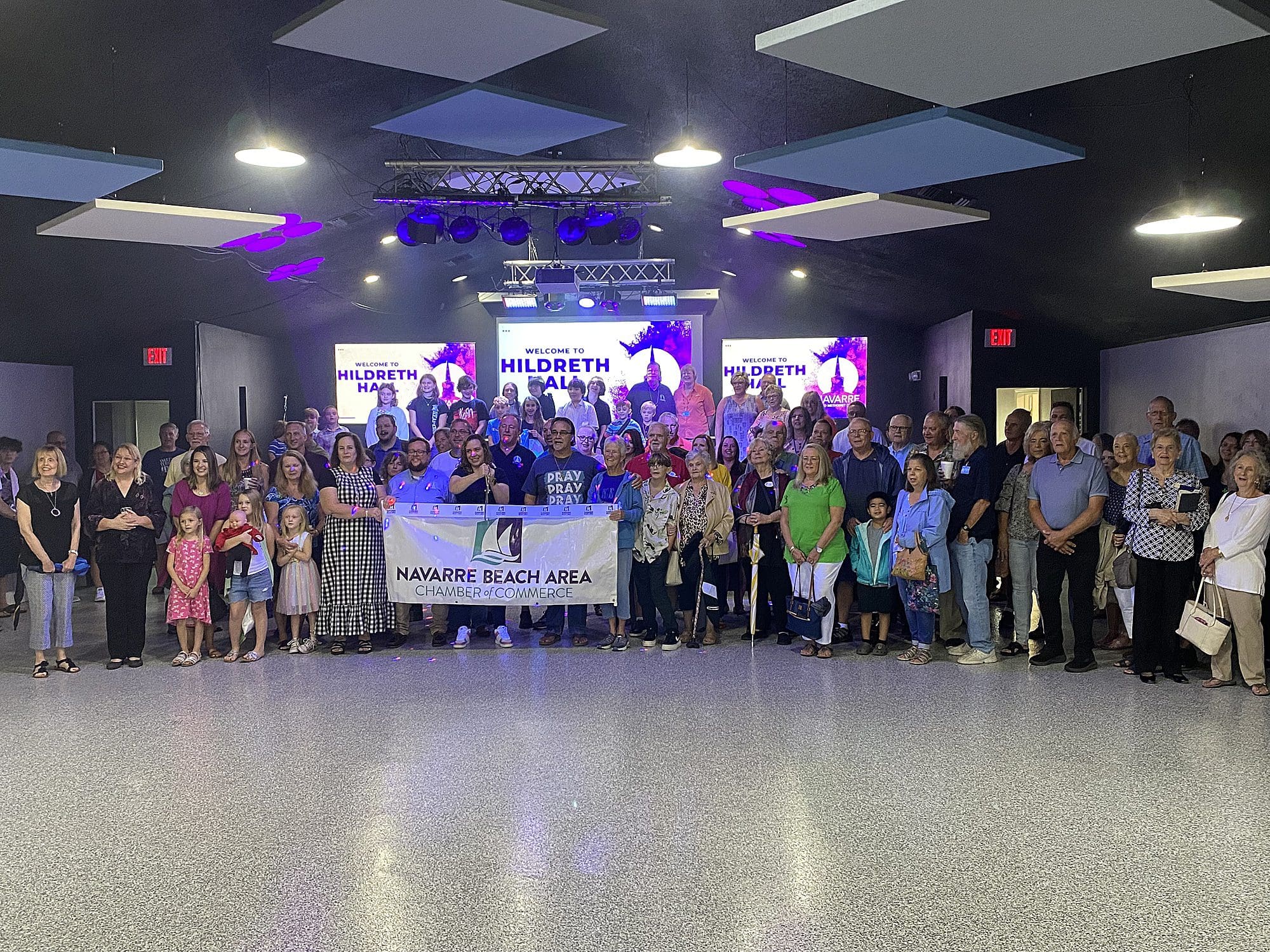 Navarre United Methodist Church officially reopens Hildreth Hall with a ribbon cutting ceremony.