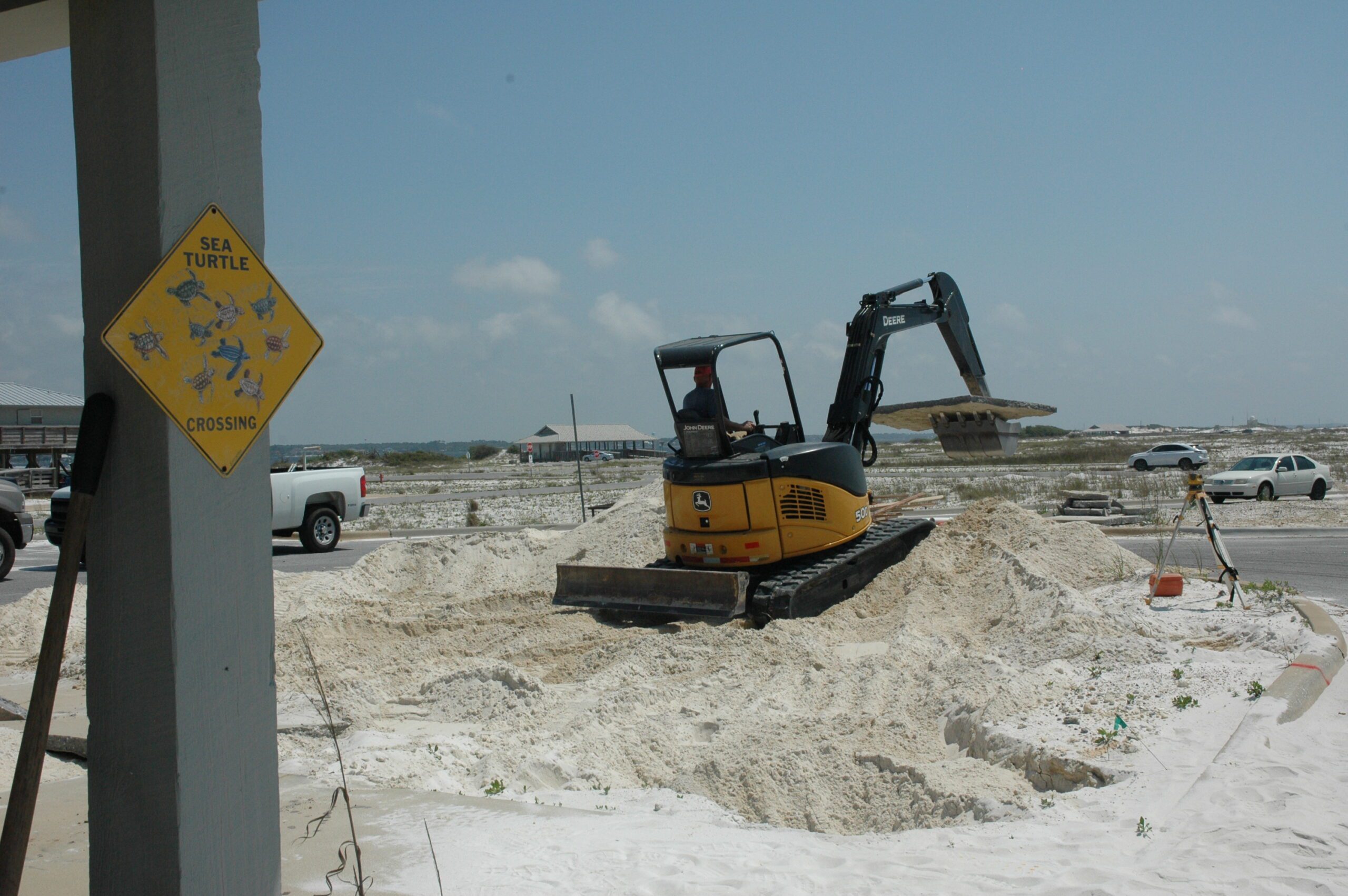 Bulldozers clear sand and cement from the Navarre Beach Sea Turtle Conservation Center, in preparation for the construction of a new viewing pool. Construction should take about six to eight weeks.