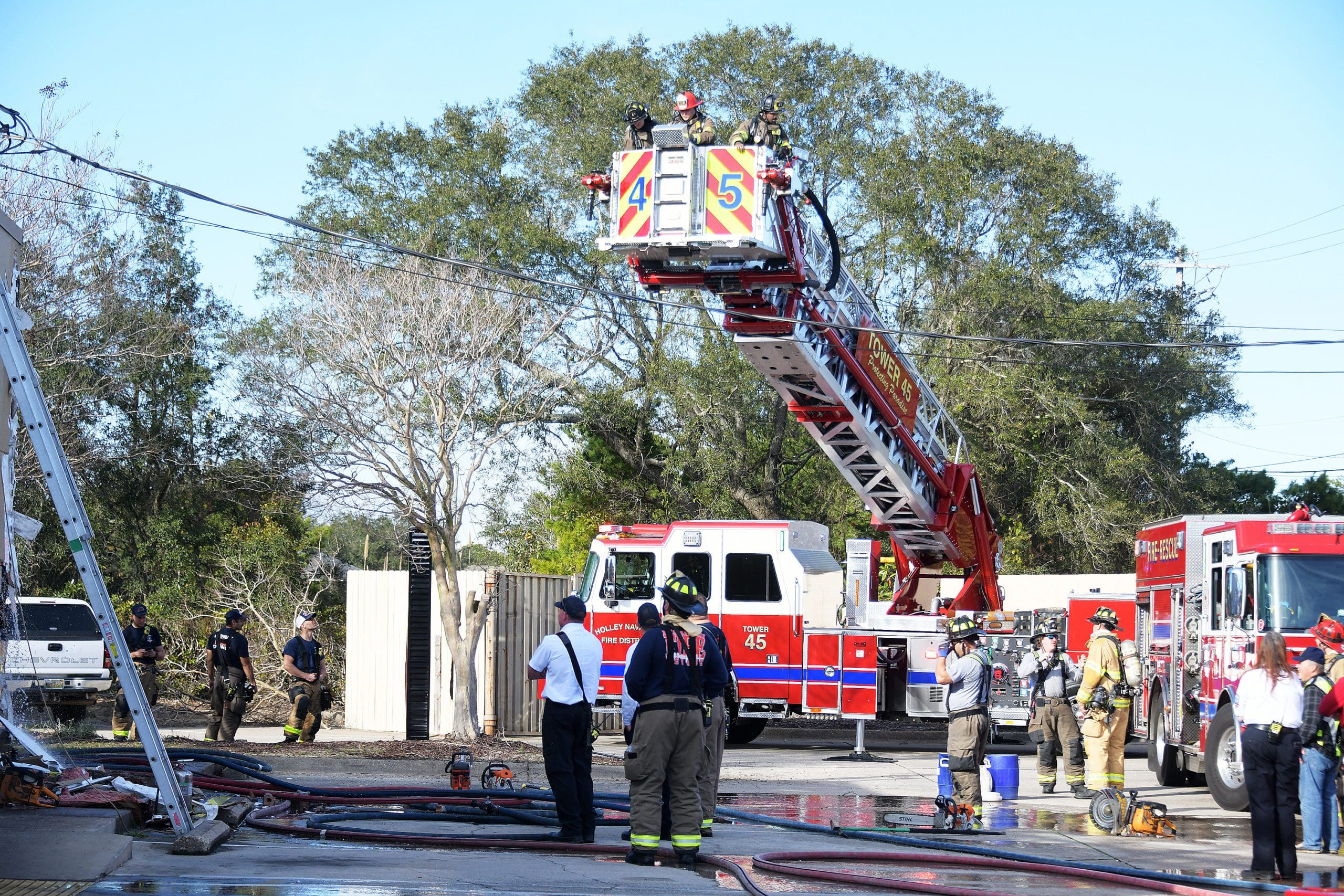Holley Navarre Fire District’s newest ladder truck takes on a structure fire at Burger King in Navarre Jan. 27.