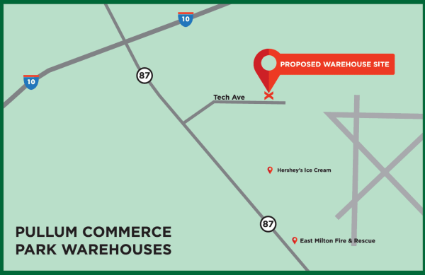 Pullum Commerce Park in East Milton is set to get three new warehouses as part of a planned development. The site, currently vacant, is on the north side of Technology Avenue.