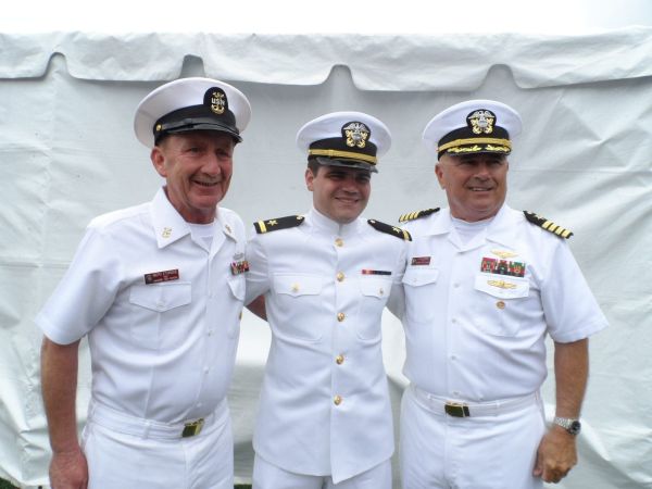 From left: Master Chief Jimmy Ethridge, Ensign Tyler Barker and Captain Mark Eubanks at the U.S. Naval Academy’s graduation.