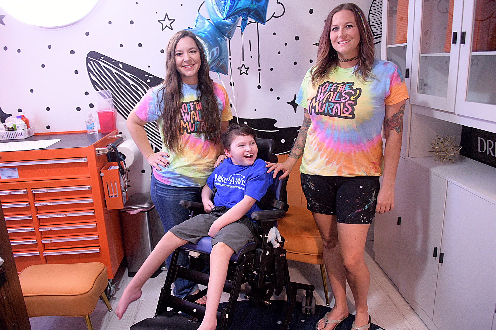 Kye and Selena Keenam have been taking care of their grandson, Sawyer Johns, since 2019. Johns, 7, has Lennox-Gastaut Syndrome (LGS), a condition which causes seizures and developmental delays. Johns has also suffered from other health issues, which have left him in need of constant care from an in-home nurse. His primary nurse, Crystal Chastain, contacted Make-a-Wish about his story and Johns now has a brand new room and bathroom because of it. Multiple local businesses helped with the remodel, including Off the Walls Murals.