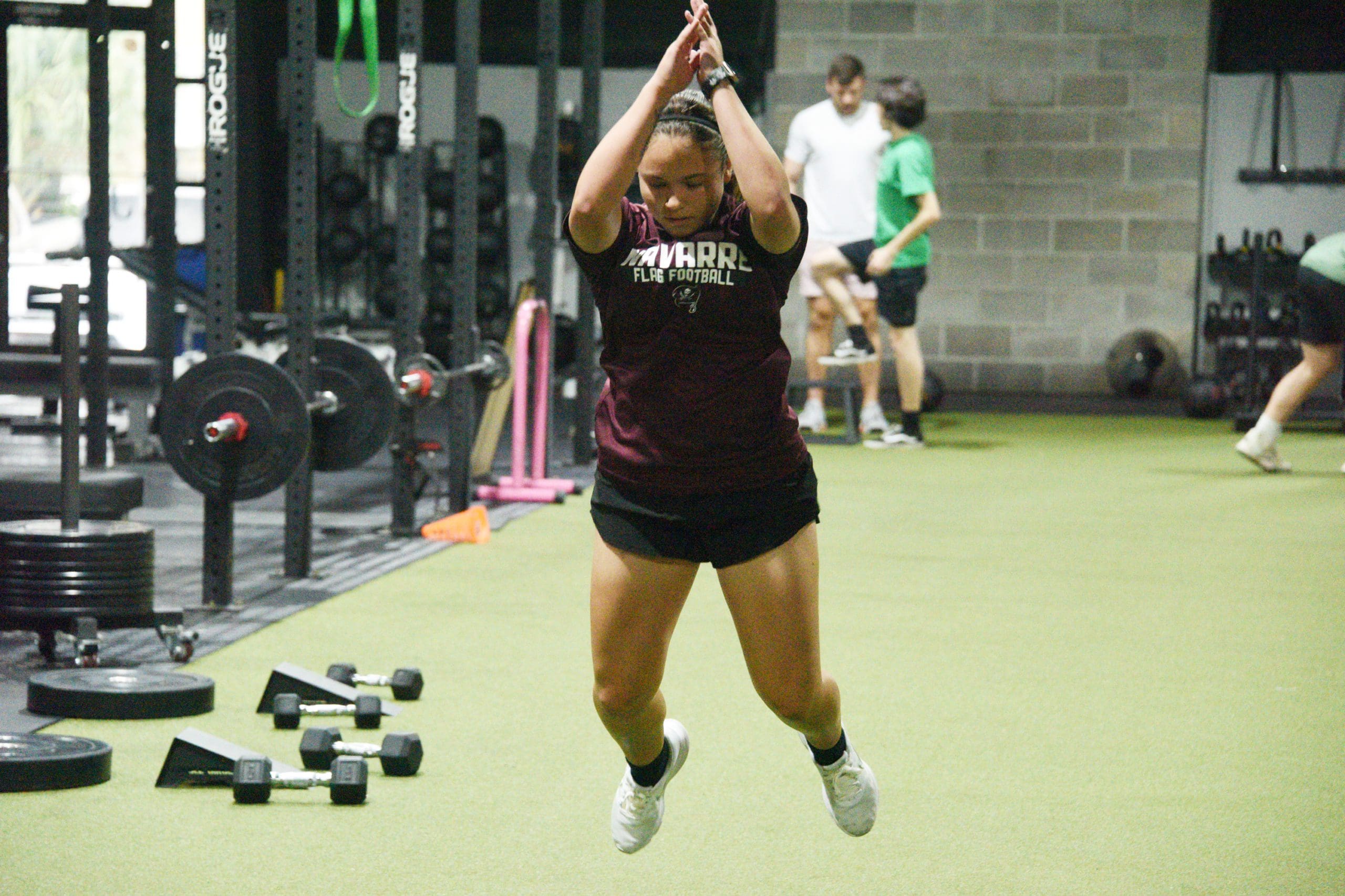It’s the offseason for flag football, and Kendall, a rising senior quarterback for the Navarre Raiders, is hard at work in a Pensacola gym on a rainy Tuesday evening.