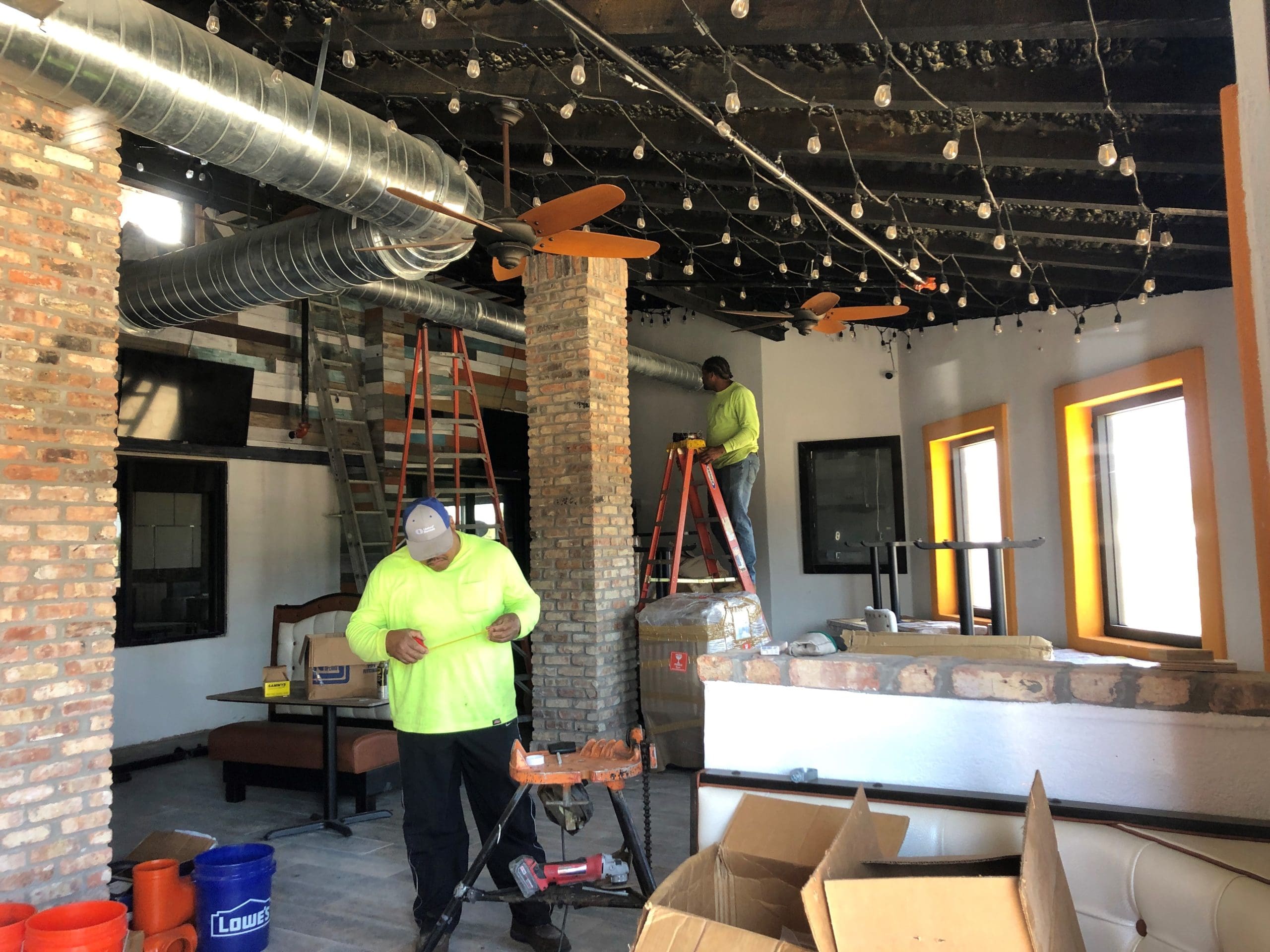 Crews install a sprinkler system at Pedro’s in Gulf Breeze. The manager said they could open as early as December. Photo by Wendy Victora Rudman