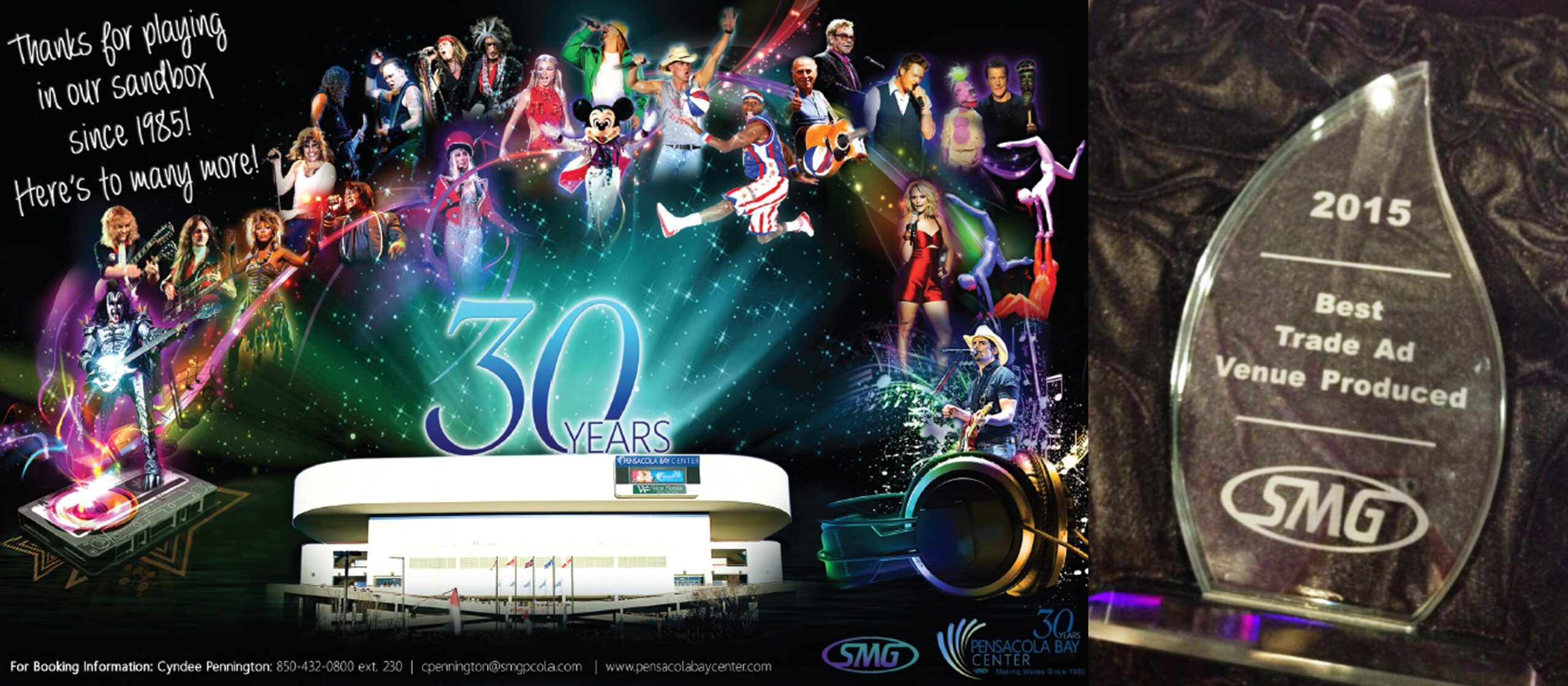 The Pensacola Bay Center’s marketing team, which is managed by SMG, recently won an award for the advertisement pictured above.
