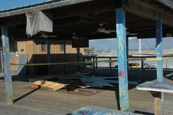 Construction of the new restaurant at Navarre Pier has stopped pending approval of necessary permits. The restaurant originally had been slated to open by the middle of February.