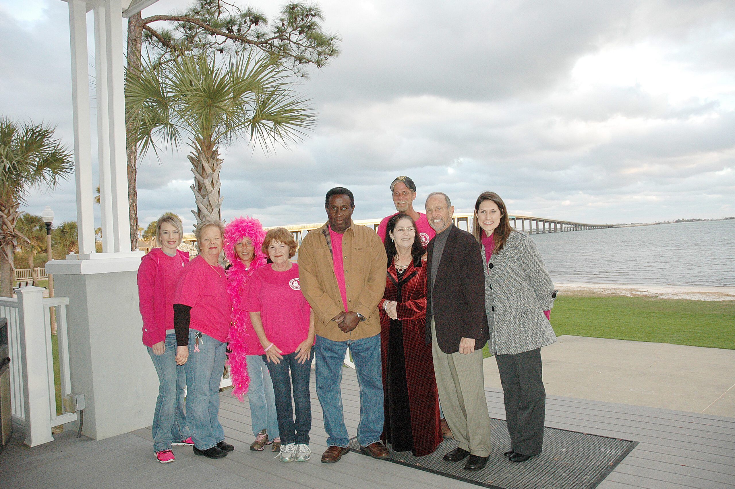 The Pink Pirates of Navarre donated $10,000 to White Wilson Community Foundation. From left, Christin Stephens, Jan Stephens Harris, Patty Miles, Barbara Thompson, Frankie Gibbs, Dr. Jack Azzaretto, Marj Cummins and Leslie Moland; back row, Troy Walter.