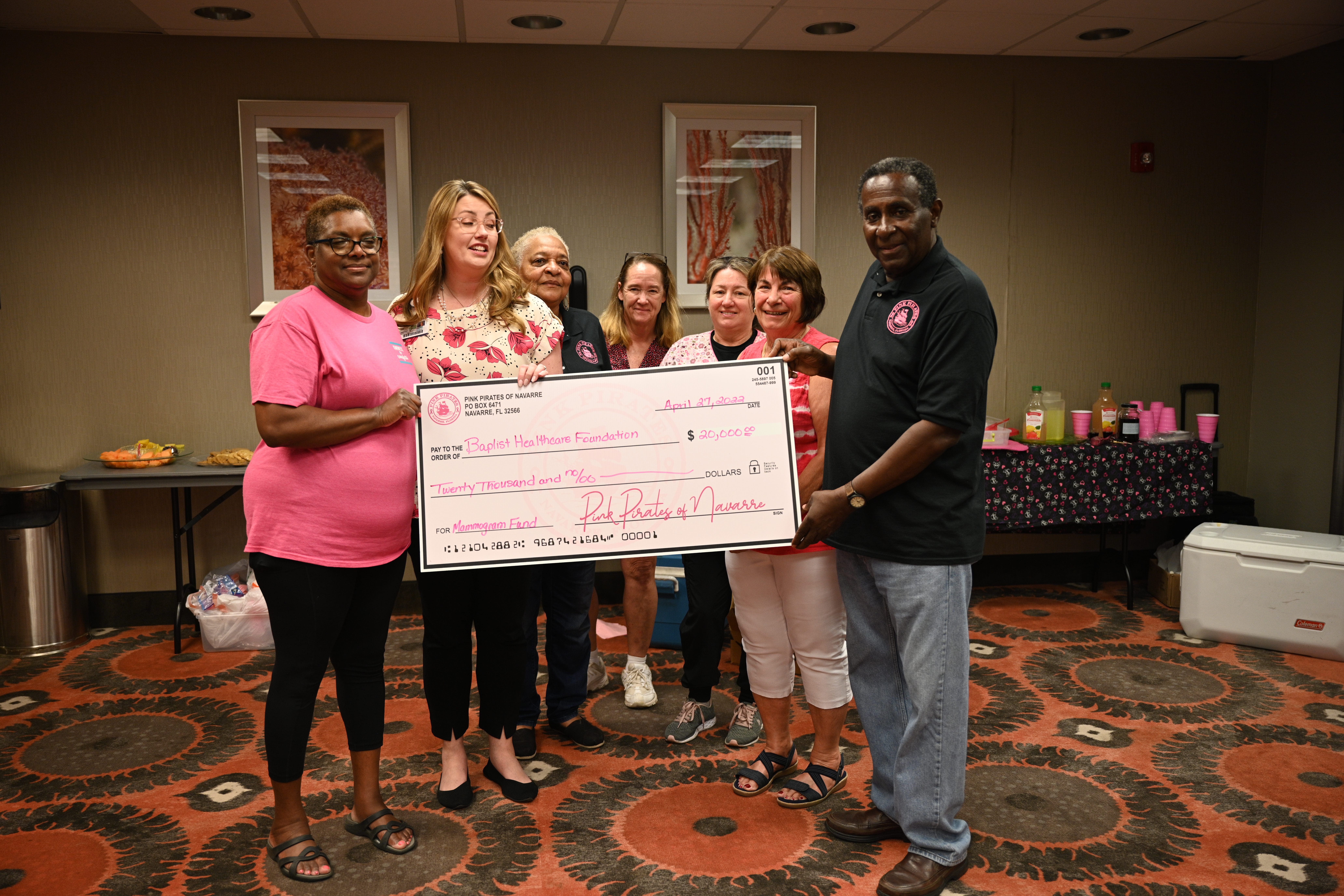 The Pink Pirates of Navarre donated $20,000 to Baptist Health Care’s mammogram fund on April 27, through their 2021 fundraising efforts.