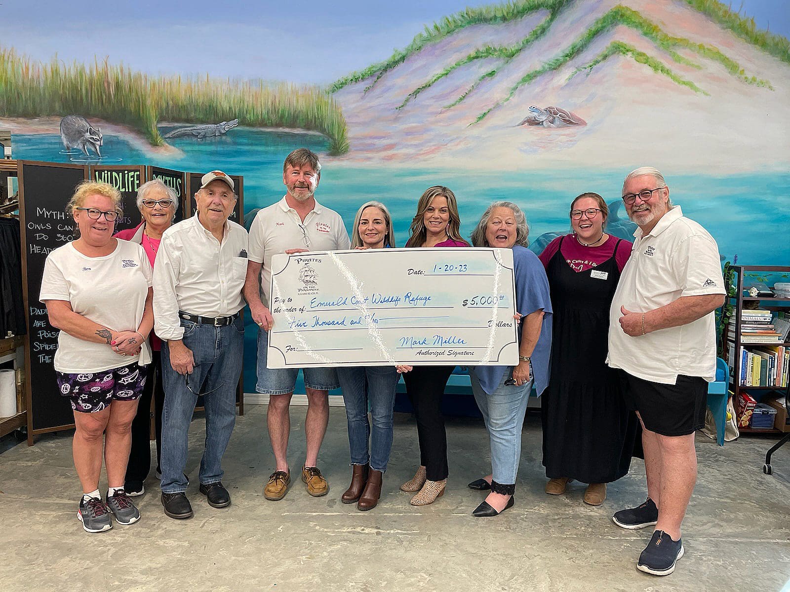 Pirates on the Panhandle present their $5,000 check to Emerald Coast Wildlife Refuge from money that was raised at this year’s Pirate Plunge.
