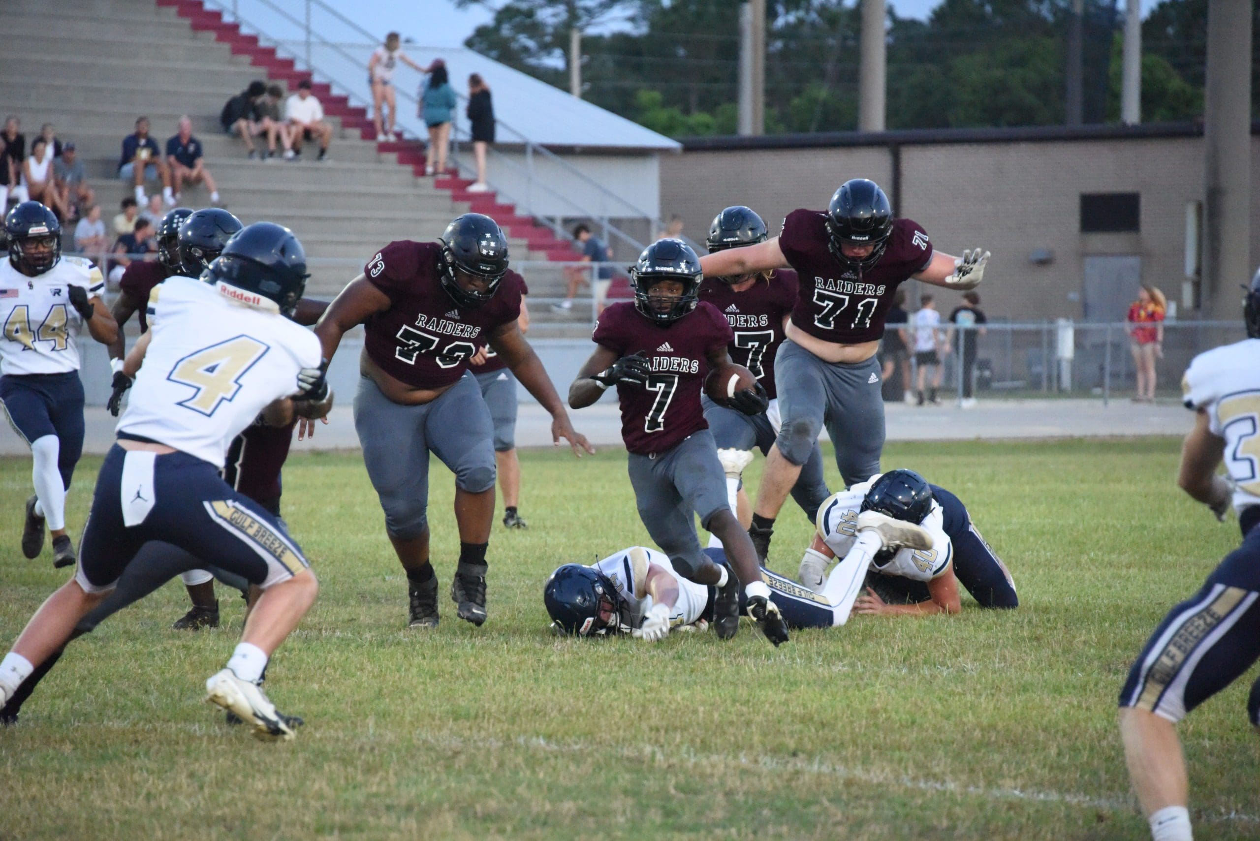 Those two touchdowns were the only ones of the night for the Raiders in the varsity half of the game at Bennett C. Russell Stadium, with Navarre losing that half 28-7 before winning the second half of the game by a 14-7 score.