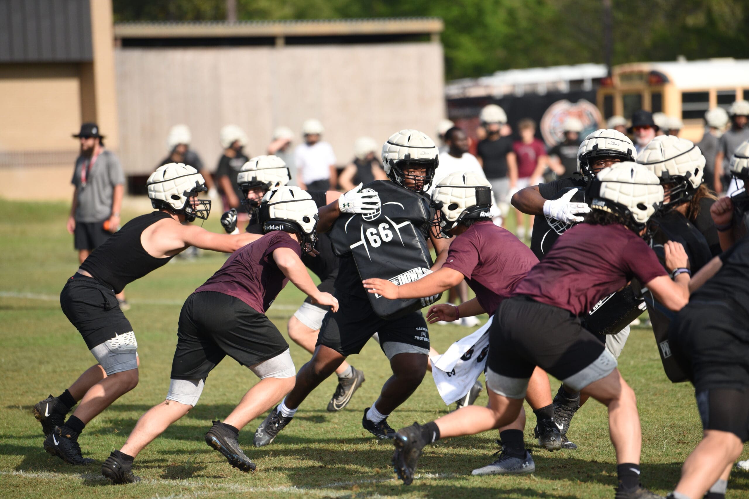 School hasn’t started yet on a Tuesday morning in late April but spring football practice is underway for the Navarre Raiders.