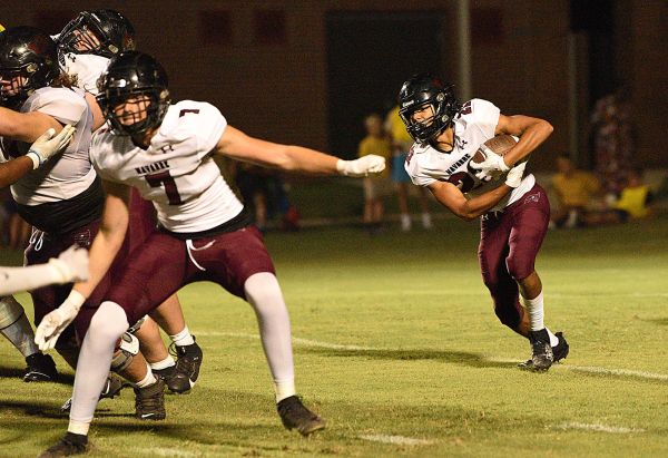 Curtis Sanders runs the ball in the second half of Navarre’s game against Catholic last season. (File Photo)