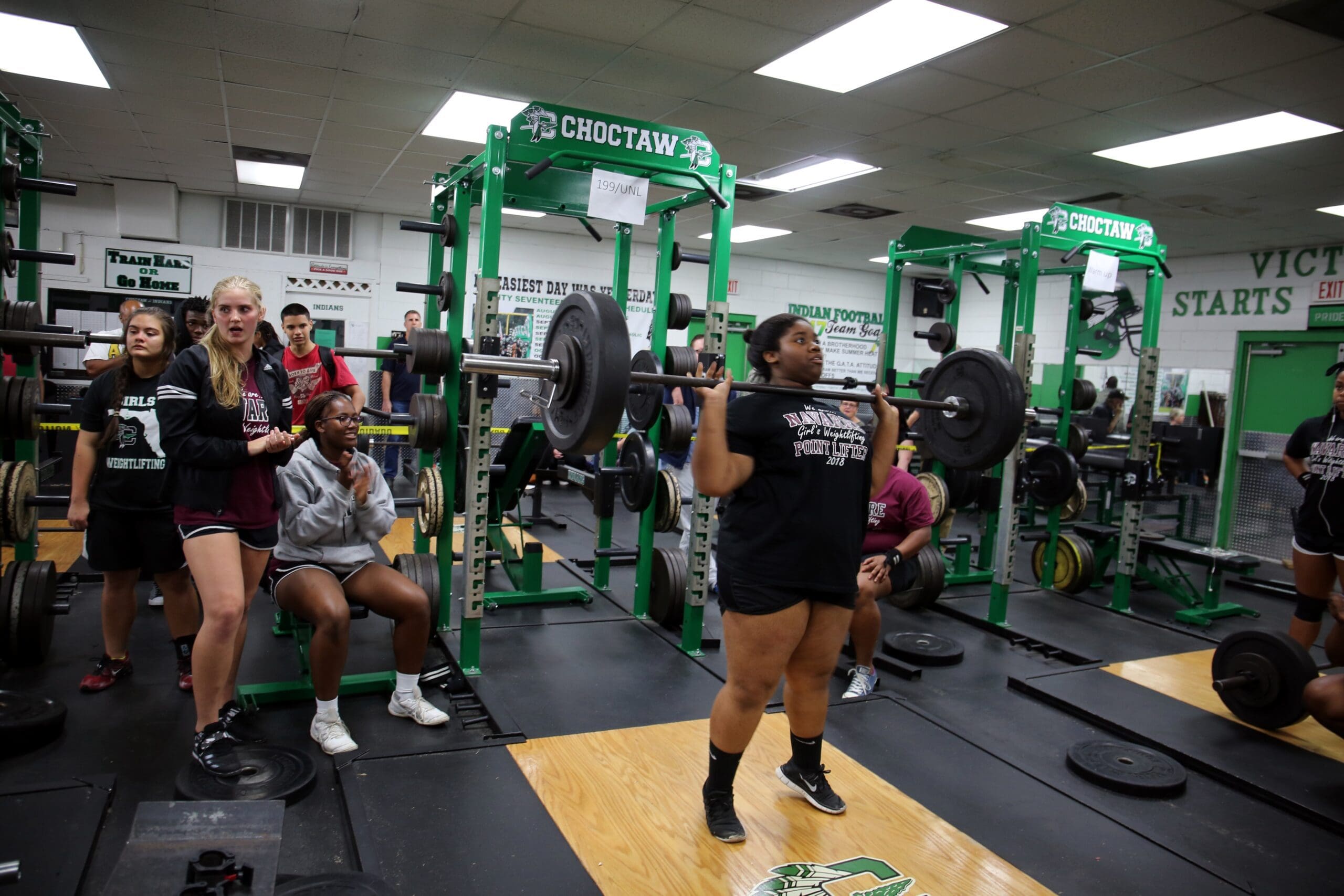 Navarre’s girls weightlifting team had scheduled a home meet against Choctaw for Nov 14. However, the Raider football coaches, who also judge the weightlifting meets, needed time to prepare for the regional semifinal game against St. Augustine.