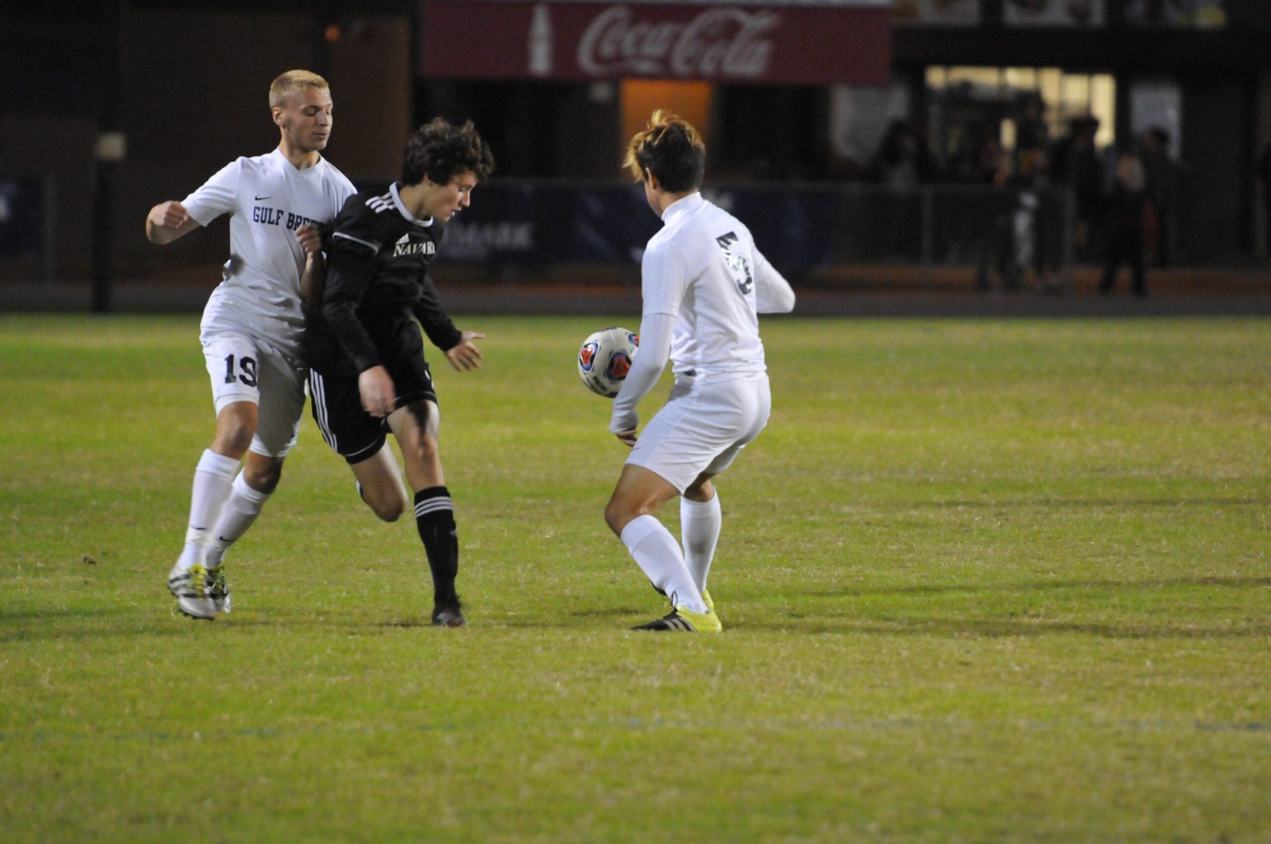 Navarre’s boys soccer team put up a fight against rival Gulf Breeze Tuesday night at Dolphin Stadium.