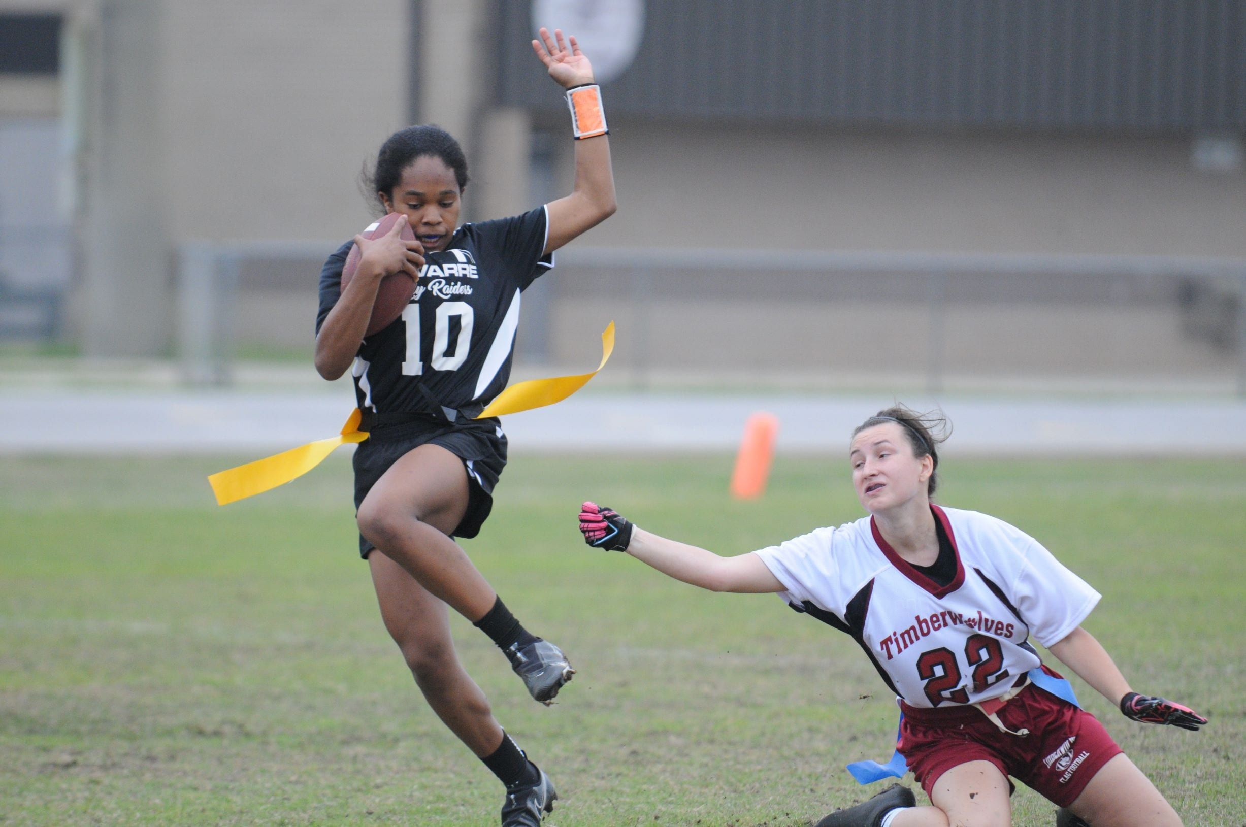 The Raiders, in fact, held a lead over the state-ranked Timberwolves most of the way in a crucial District 1-2A flag football showdown on a warm and cloudy afternoon at Bennett C. Russell Stadium.