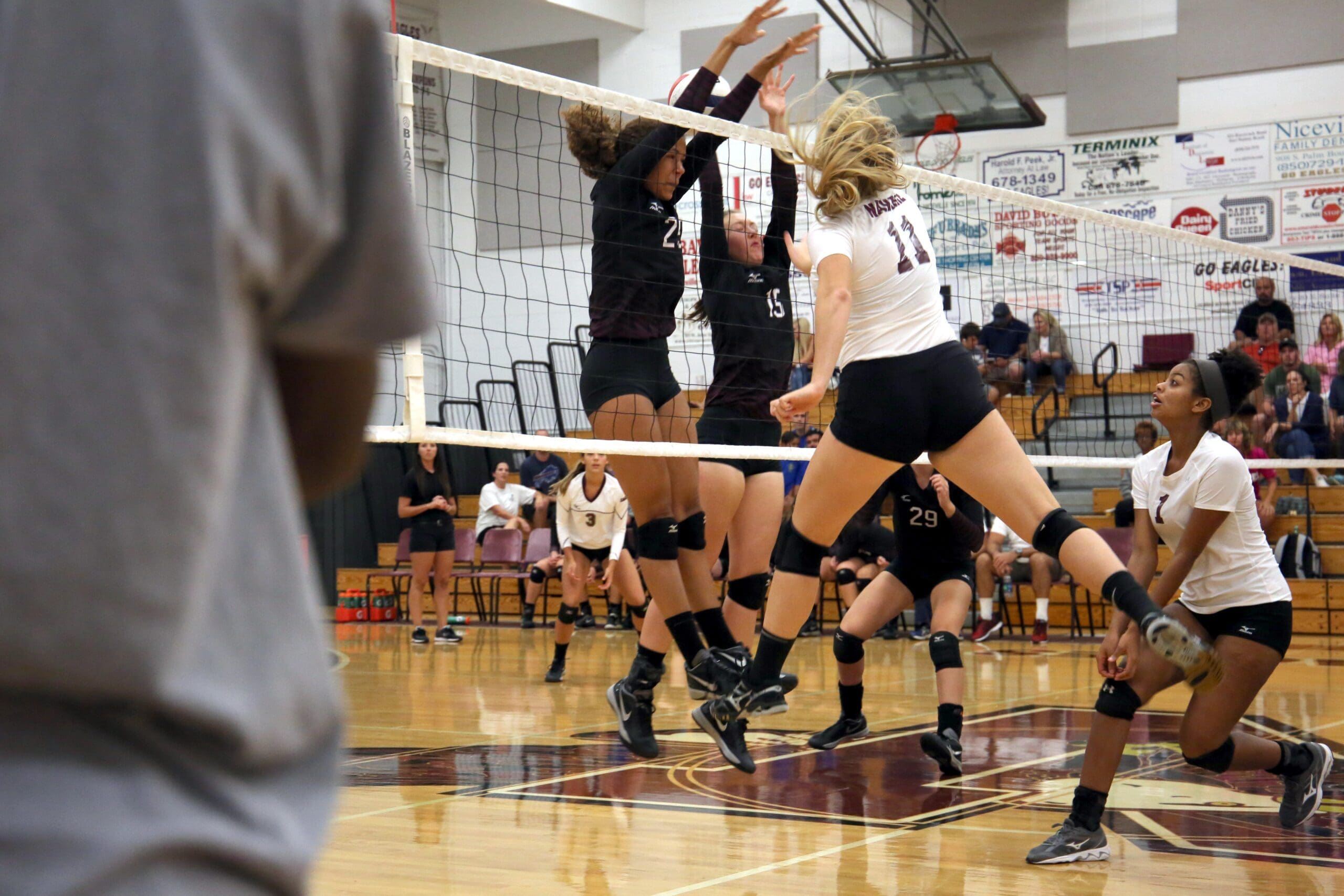 Navarre’s volleyball team traveled to Niceville to take on the district leaders on Sep. 14. They hoped to give the Eagles a good match, but were overwhelmed, losing three straight games, 25 – 6, 25 – 10 and 25 – 9.
