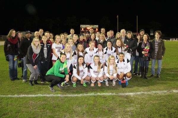 The Raiders won their second game of the week at home against Fort Walton Beach on Jan. 6 by a 9 – 1 score. However the fans came to see more than a game. They were there to pay homage to the seniors of the 2015 – 2016 Lady Raiders’ soccer team. The 11 seniors, Gianna Bly, Kayla Folse, Lexi Stikeleather, Carley Lanter, ‘Cat’ Bacccarini,`