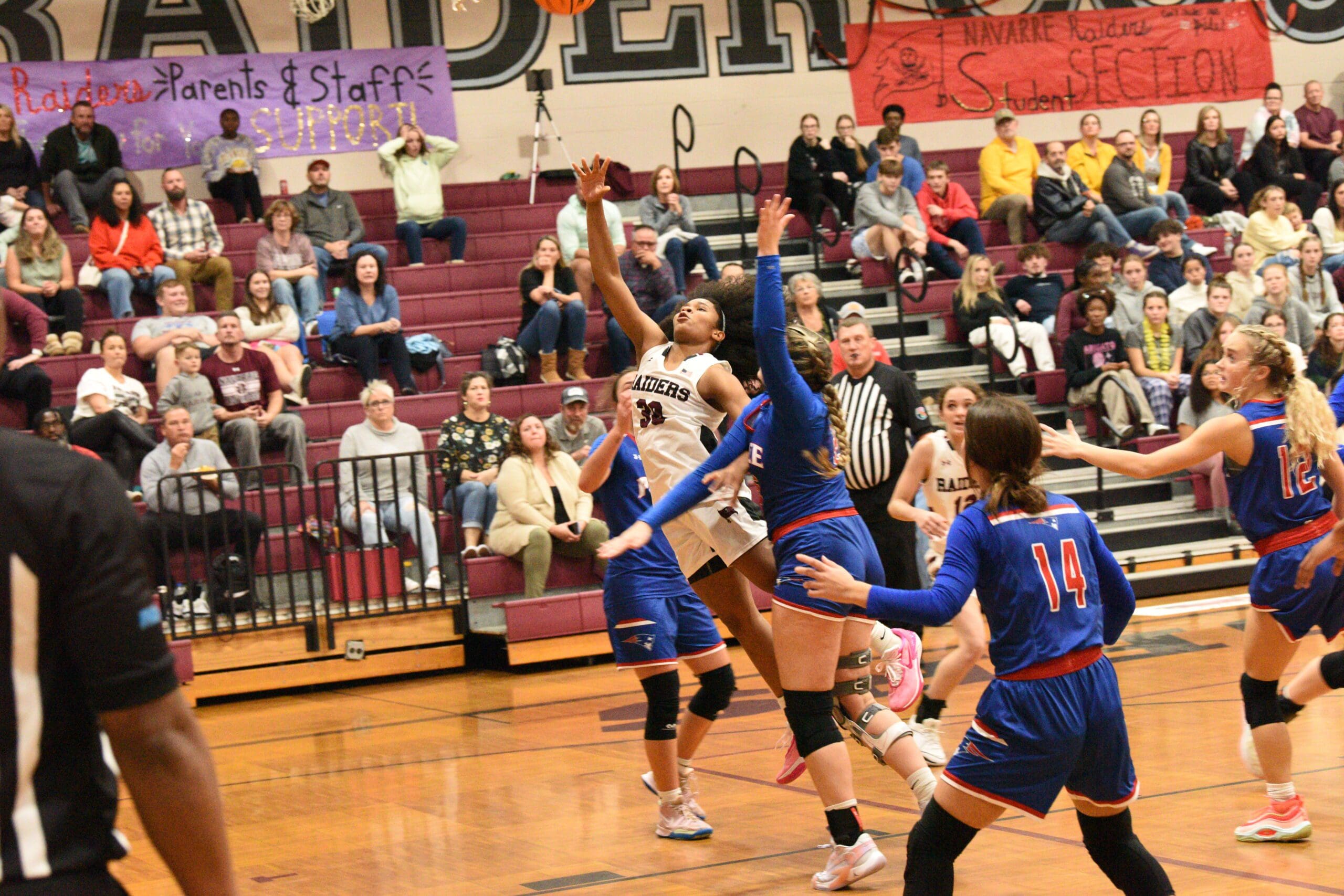 Madison Simmons battled a cramp in her leg with a few minutes left in the fourth quarter, forcing her to the sideline during Navarre’s District 1-6A game against Pace Tuesday night.