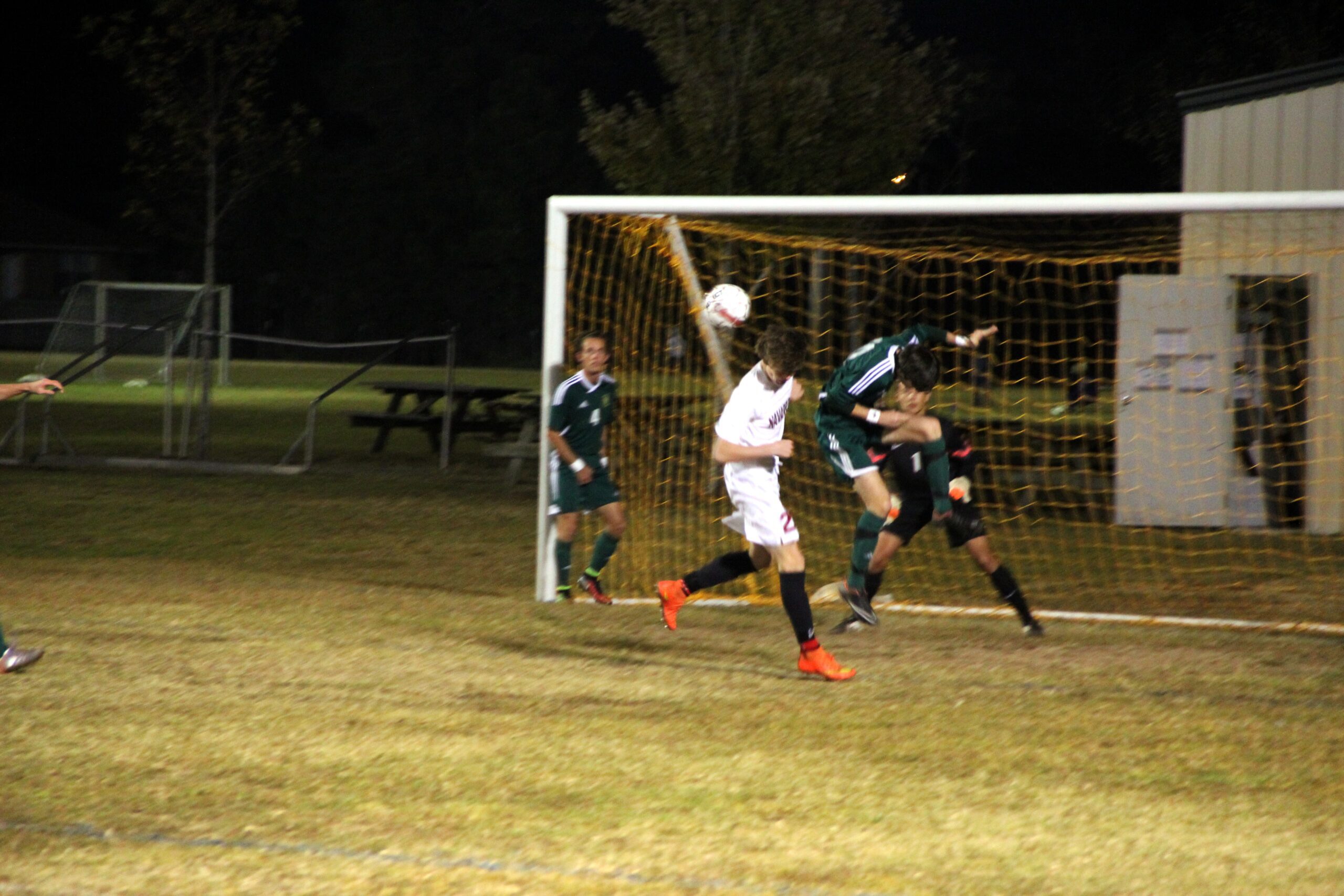Bobby Holderman just misses converting a Raider corner kick against Catholic