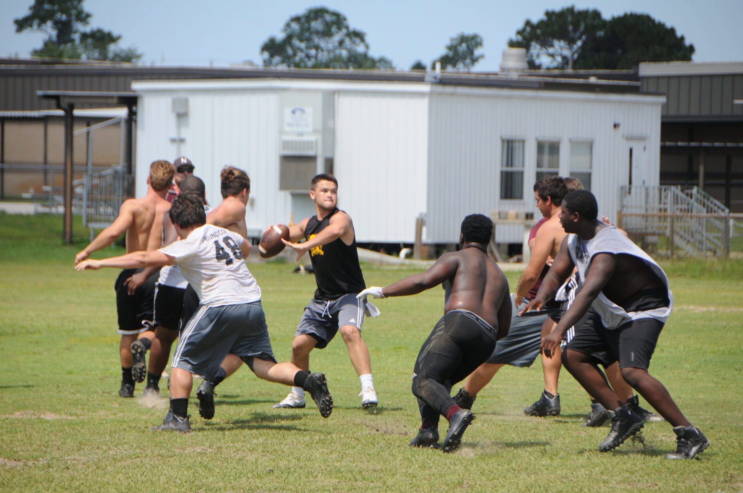 Just behind Bennett C. Russell Stadium, the place where Navarre’s dreams of a perfect season came crashing down in a gut-wrenching 23-22 loss to Tate in the opening round of the playoffs last November, the Raiders work hard on a sun-splashed practice field.
