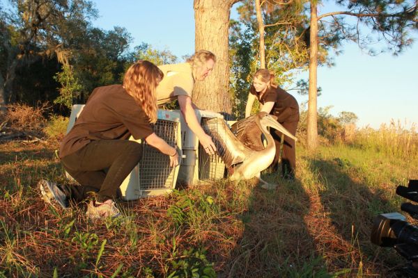 As the sun set over a silent stretch of East Bay in Holley, three juvenile pelicans took flight toward freedom for the first time in months Wednesday, Nov. 16, during a hard release by the Emerald Coast Wildlife Refuge.