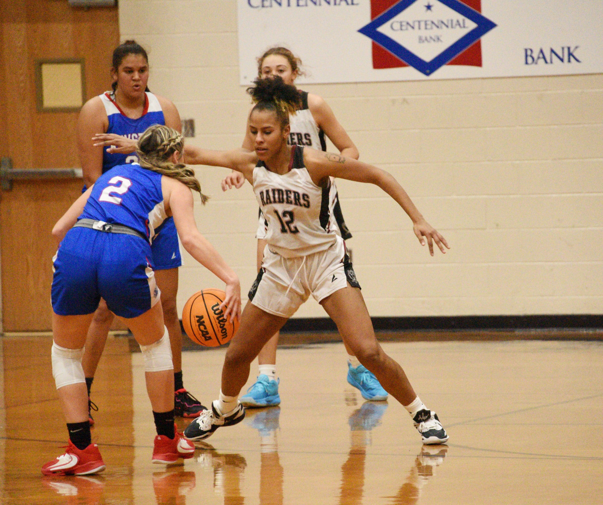 Angel Rhodes stands under the basket bruising and battling with opposing players.