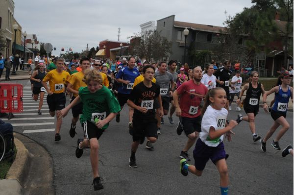 Runners compete in the 5K Riverwalk Saturday in Milton. The event helped raise money for youth sports teams at the Guy Thompson Community Center.