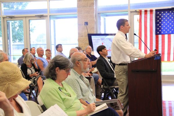 Ryan Weed of Baskerville Donovan, Inc. presents the findings of a maintenance plan generated for Holley by the Sea’s drainage easements Monday at the Board of County Commissioners meeting in Tiger Point.