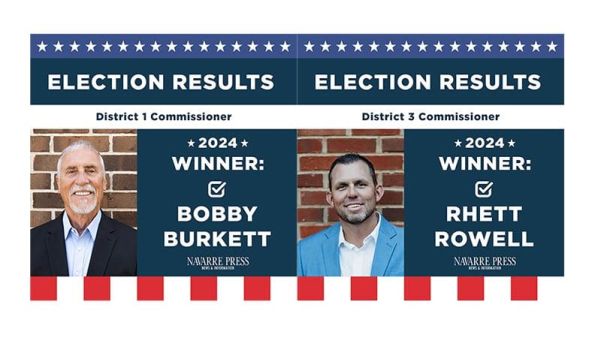 Rhett Rowell defeated incumbent James Calkins and challenger Jerry Couey to win the district 3 seat on the Santa Rosa County Board of Commissioners. Bobby Burkett defeated incumbent Sam Parker and other challengers in the District 1 race.