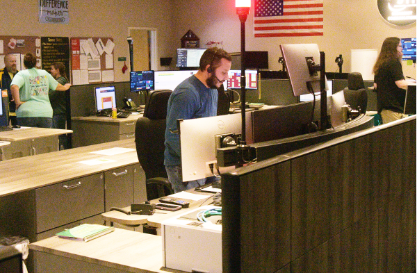 Cody, a dispatcher with Santa Rosa County, works an EMS call Friday, Feb. 9.