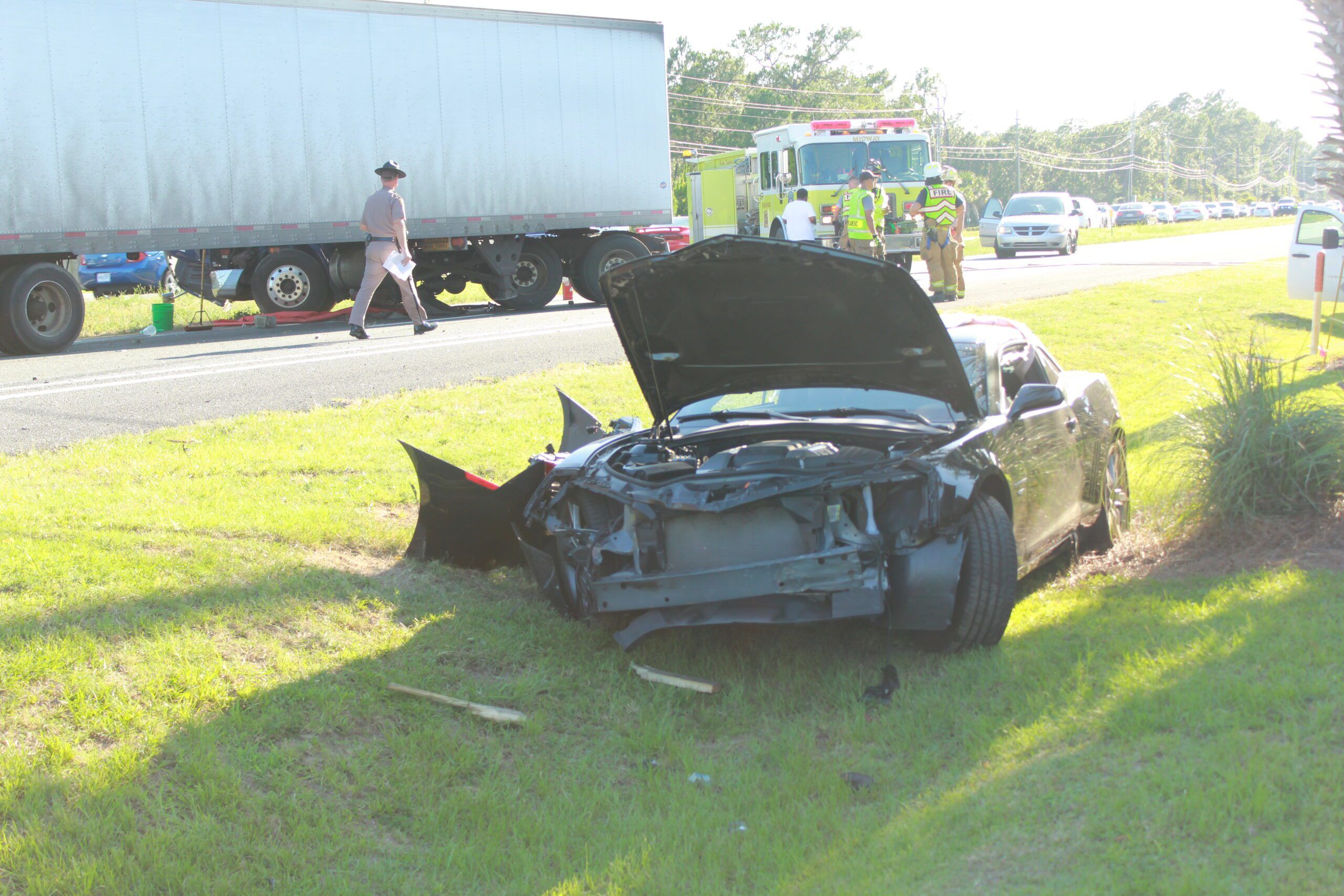 Traffic on U.S. Highway 98 came to a crawl for more than three hours Wednesday afternoon, June 22 after a three-car accident left a semitrailer jackknifed across the westbound lanes.