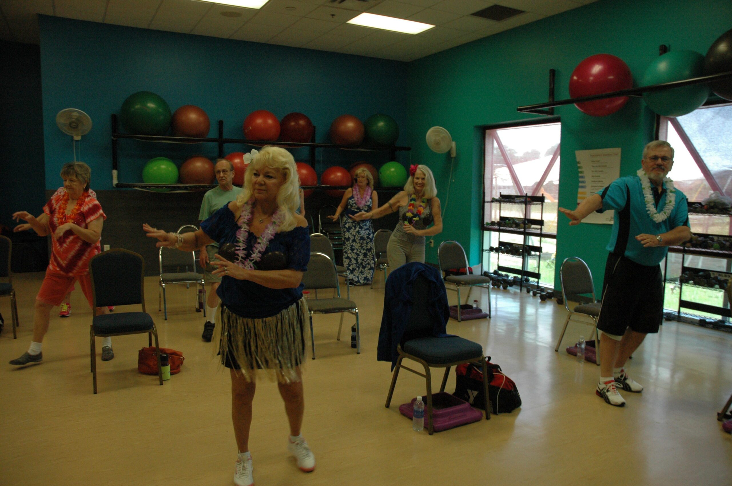 Senior fitness had a Hawaiian twist Friday when seniors at the Pullum YMCA wore grass skirts, Hawaiian shirts and coconut bras for their weekly Friday fitness class.