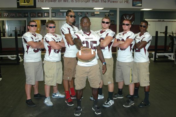 Jay Warren stops a reporter mid-sentence when asked about being part of one of the best football teams in Navarre history.