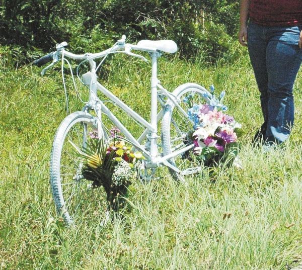 That white bicycle was placed there to honor Elizabeth Allmon, known to many in Navarre as the “Bike Lady.” Allmon was killed June 9, 2009 when a car drifted across the white line dividing the roadway from the shoulder and struck her while she was bicycling along the busy highway. The bicycle was donated by the Emerald Coast Cyclist’s Club. Allmon, who lacked a permanent address, was a familiar sight in Navarre.