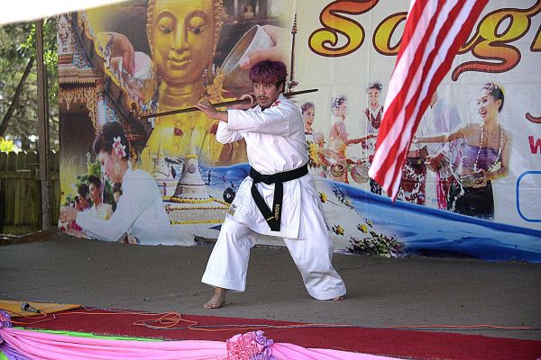 The smell of Thai food cooking. The sight of a martial arts demonstration. The sound of Thai music over a loudspeaker.