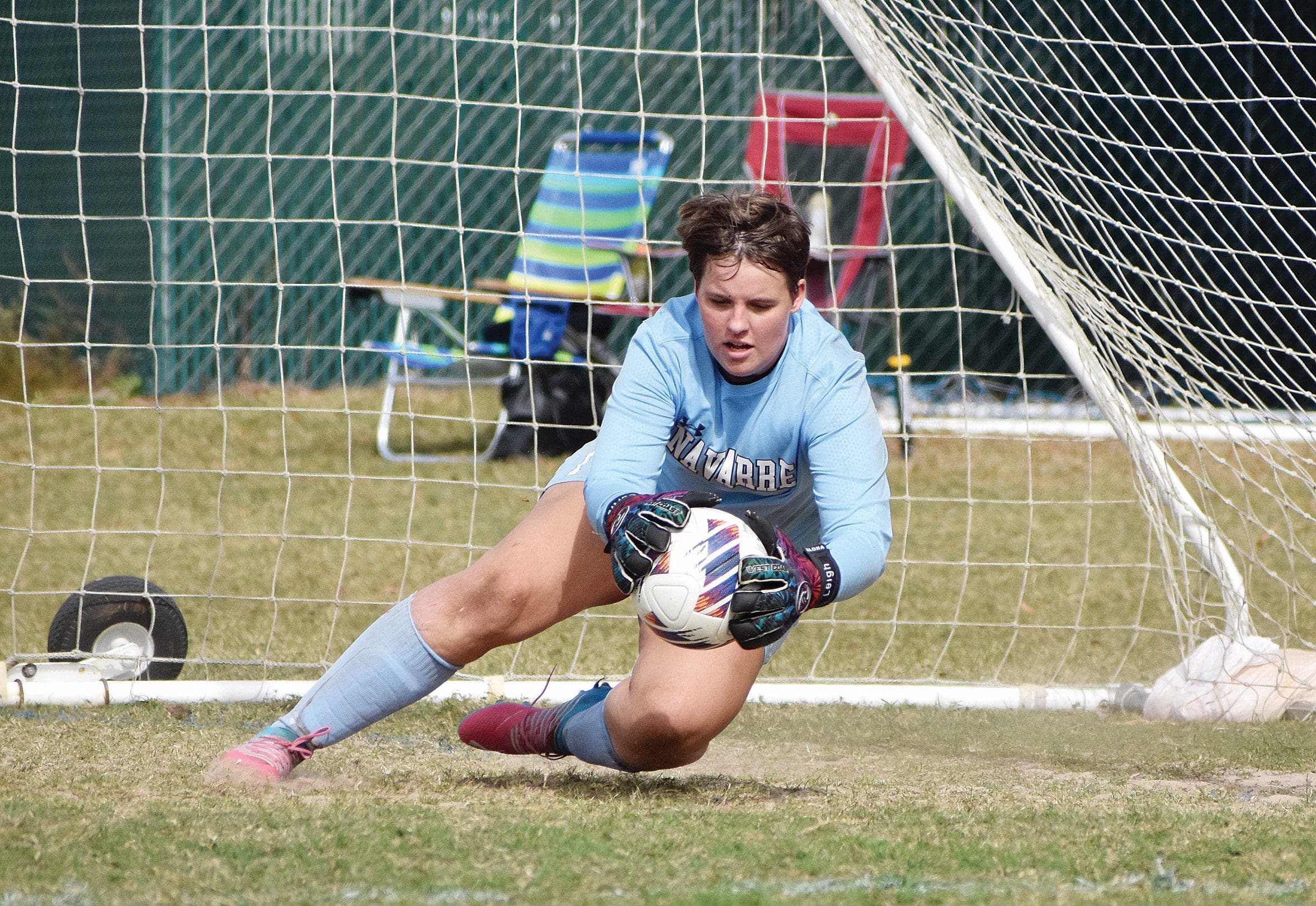 Navarre High School goalkeeper Leigh Curtis makes a save in practice last fall.