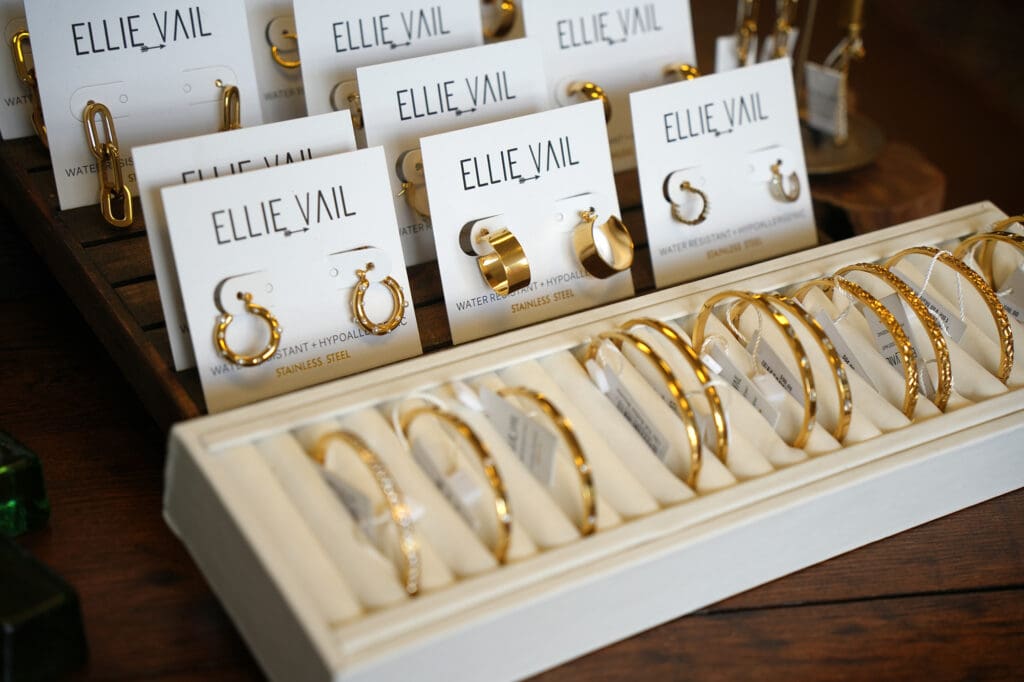 A new line of jewelry that just landed is called Ellie Vail. These stylish earrings and bracelets, which are made from hypoallergenic stainless steel, are designed to be tarnish-resistant and water-resistant.