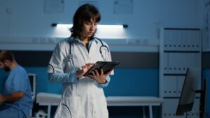 Practitioner,Doctor,Holding,Tablet,Computer,Checking,Patient,Report,While,Typing Written by Tyler Wind on December 5, 2023. Previous