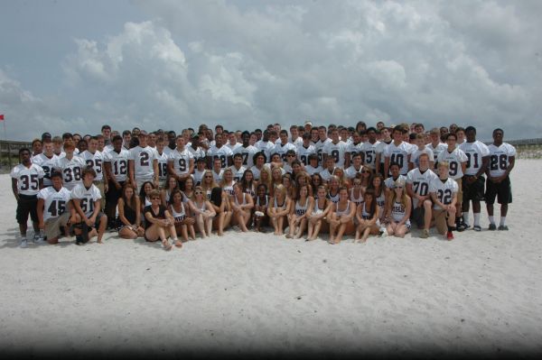 Navarre High School football players and cheerleaders are accustomed to performing on grass, but they showed May 28 they can also make important plays on sand.