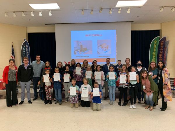 Students at West Navarre Intermediate School pose with members of the American Institute of Architects Northwest Florida Chapter and school staff members after the 10th annual Gingerbread House STEAM event Dec. 2.