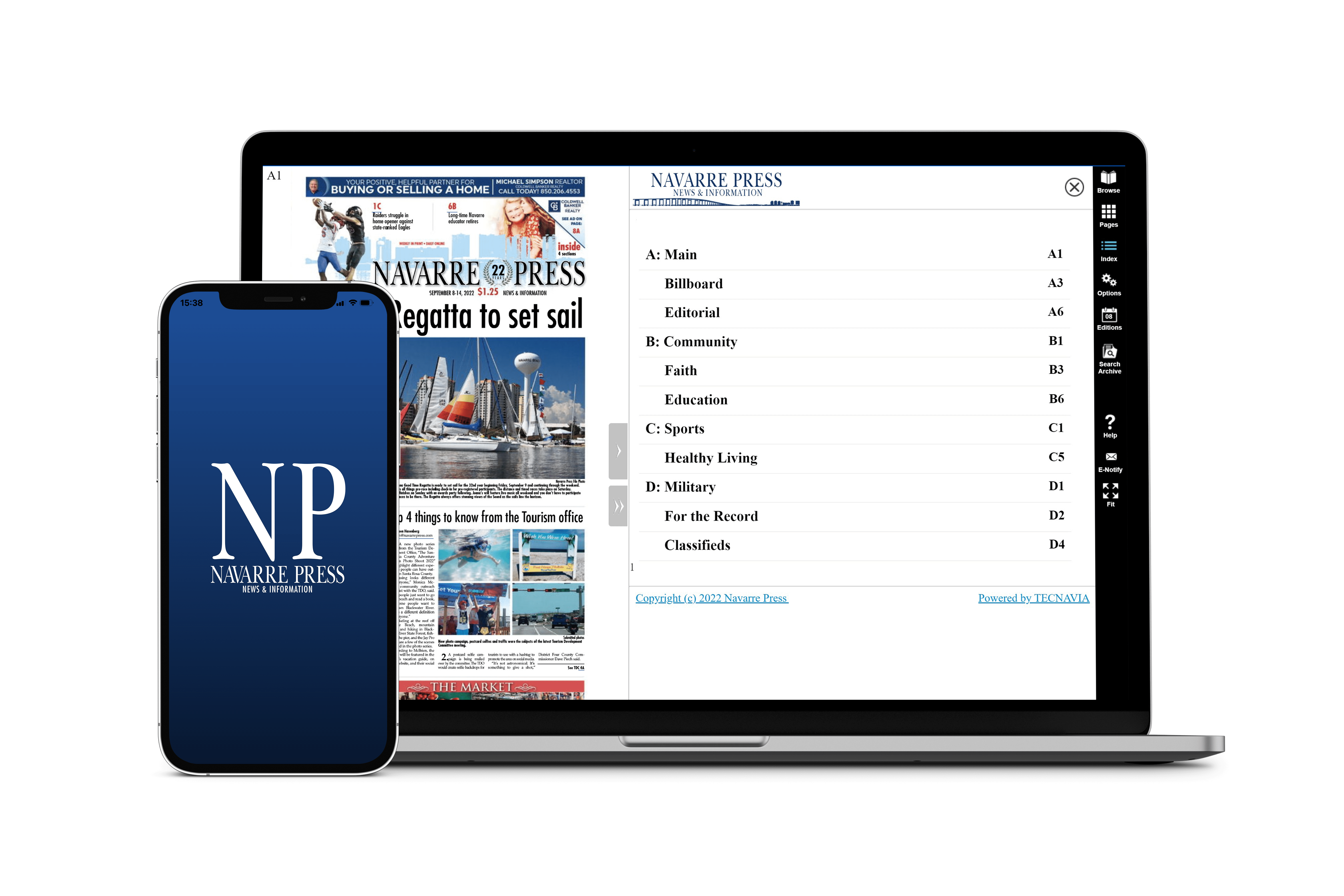 E-Edition access available online or on the Navarre Press App which can be downloaded from the Apple & Google Play Stores.