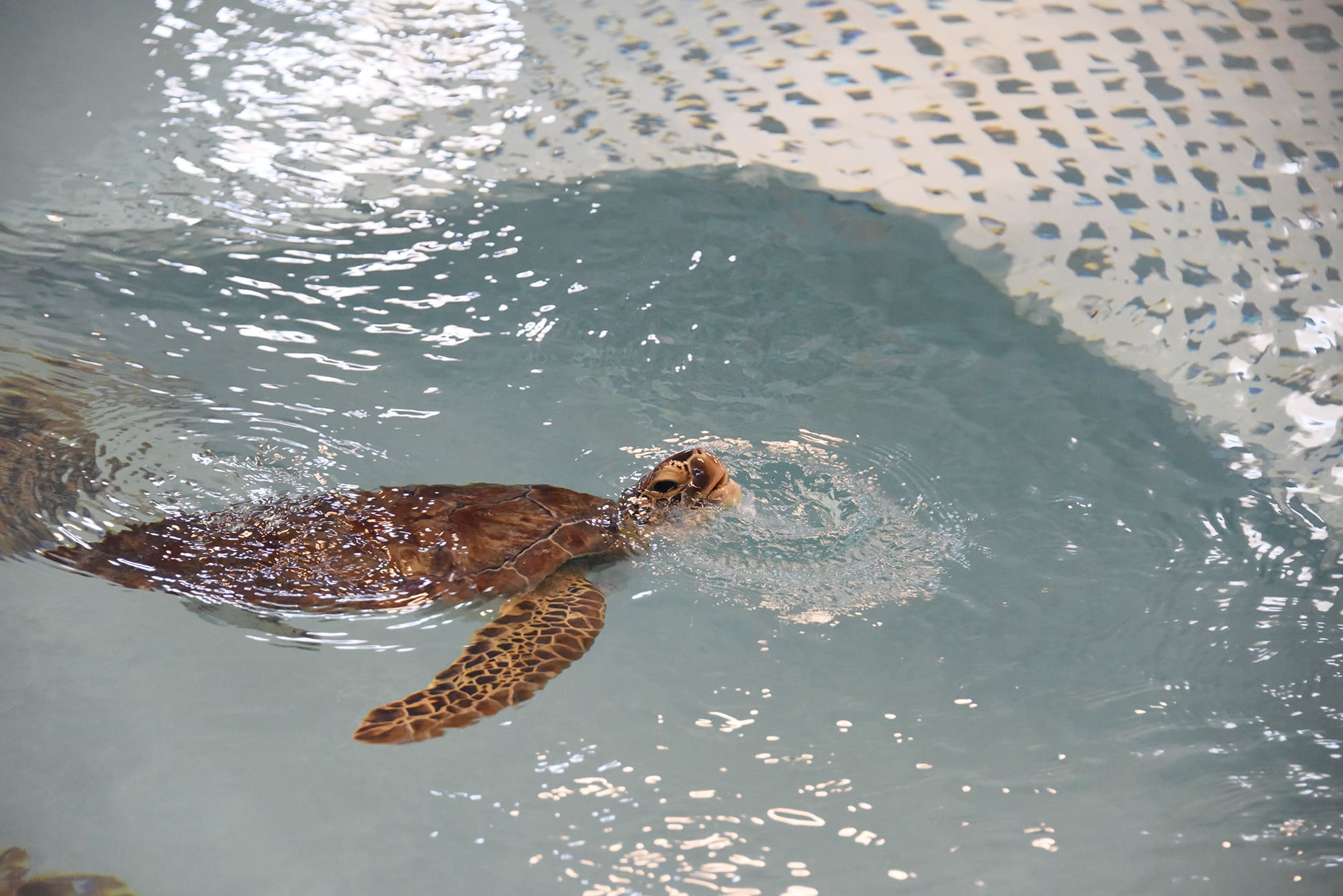 On Jan. 18, 2018, the Navarre Beach Sea Turtle Center was chosen to be the forever home of a sea turtle survivor. Coming to the center at just 16 lbs., Sweet Pea, a juvenile green sea turtle, had survived being tangled in fishing gear, which damaged her arm and paralyzed a back flipper. Some of the fishing gear was found inside her body as well.