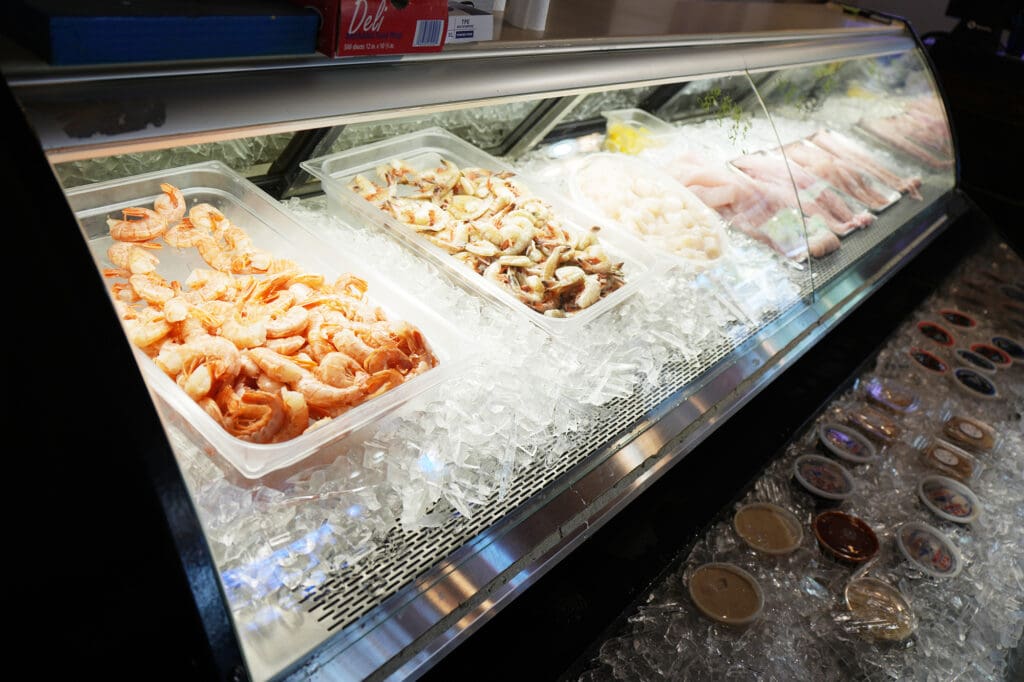 At the market, you’ll also find Florida fresh stone crab, frozen snow crab, Dungeness crab, smoked tuna dip, oysters and fresh bay shrimp out of Pensacola Bay. Blue crab has had a slow start again.