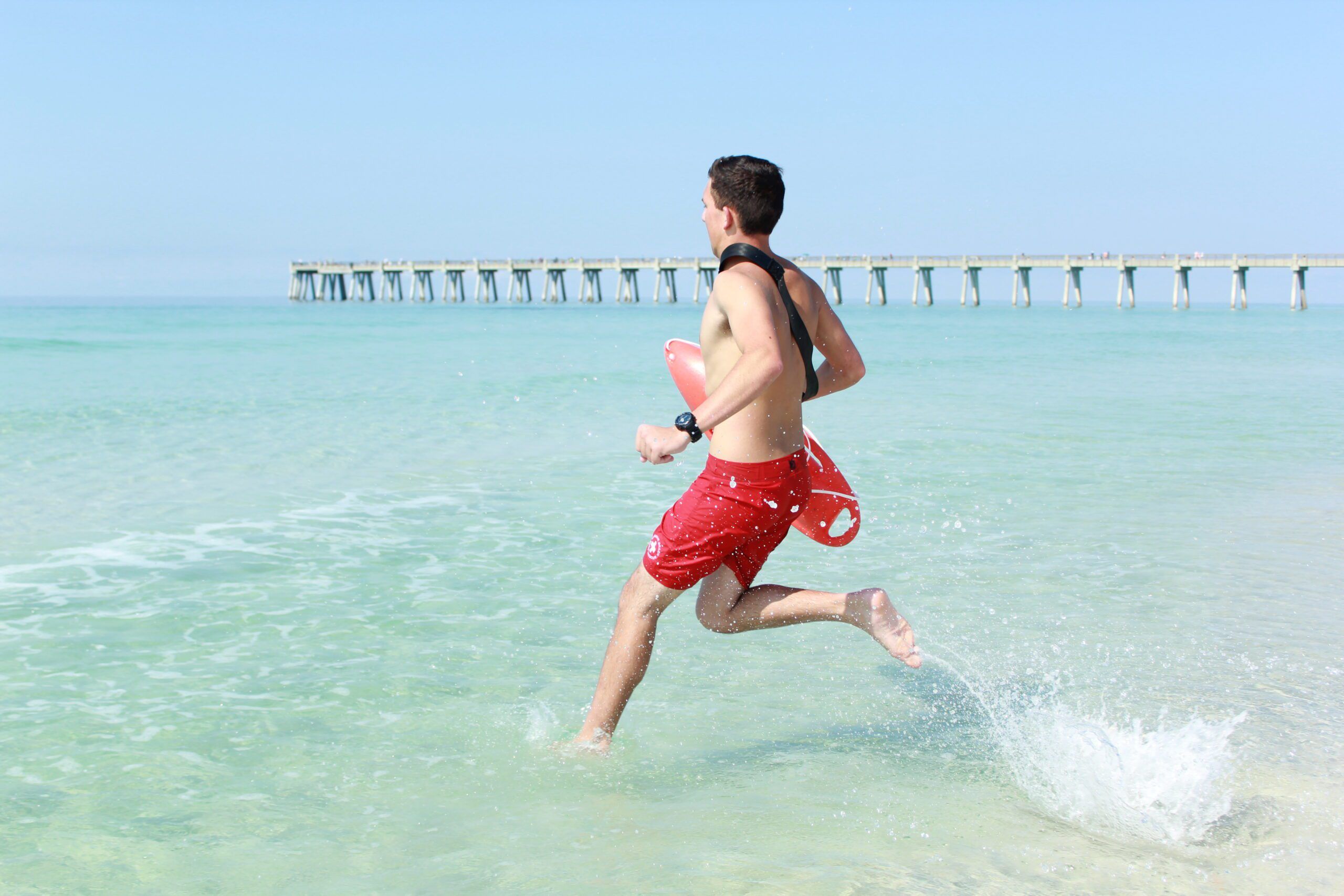 Waves crash against the shore on a sun-splashed Monday morning on Navarre Beach. The sun is shining and a yellow flag is flying, warning swimmers of the dangerous rip currents in the Gulf of Mexico and to swim with caution.