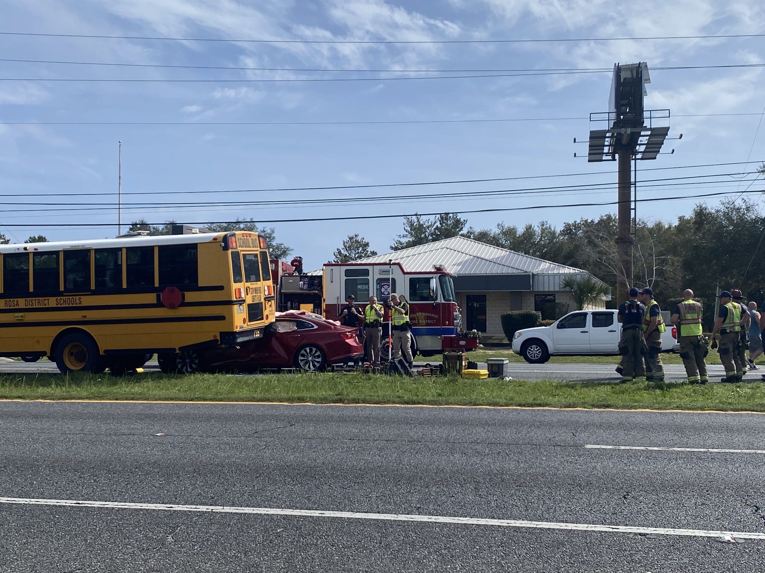 A 71 year old woman died after striking the back of a school bus in the eastbound left lane of Highway 98 Wednesday, March 11. The incident occurred near Sunrise Drive in Navarre.